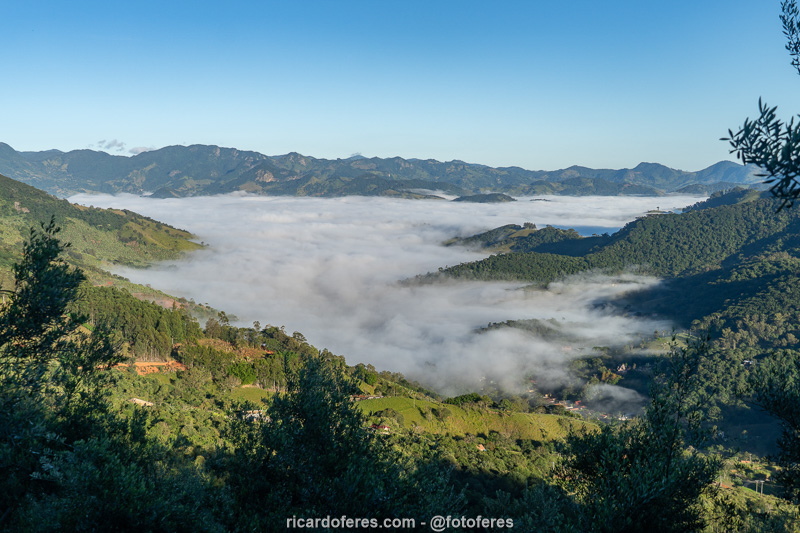 No inverno é comum que a cidade fique coberta por neblina no início da manhã. Foto feita na estrada para o estacionamento da Trilha Chico Bento.